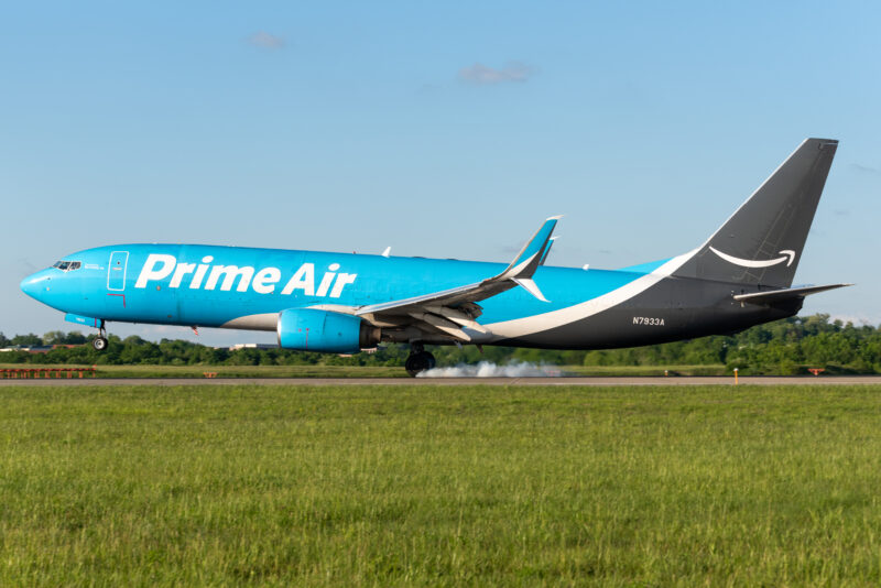 An Amazon 737-800F operated by Sun Country lands at Pittsburgh International Airport on May 16, 2024. (Photo by Evan Dougherty)