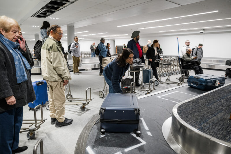 Passengers pick up their checked bags from PIT’s renovated international baggage handling system on Nov. 17, 2025. (Photo by Beth Hollerich)