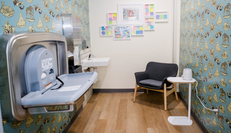 “It was a wonderful opportunity to create a resource space for families,” said Anne Fullenkamp, senior director of Creative Experiences at the Children’s Museum of Pittsburgh. “What I love is that you have a play space plus a place for families and what they need when they are traveling.”