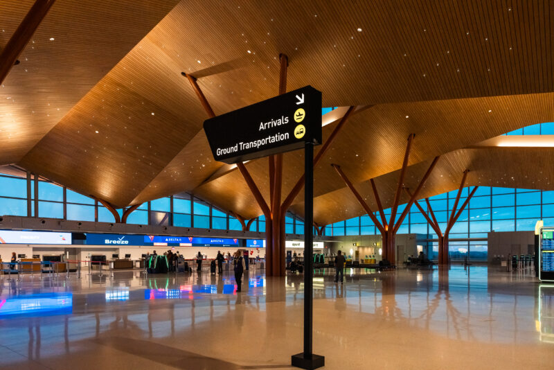 Signage on the new terminal’s Departures Level in November 2025. (Photo by Tom O’Connor)